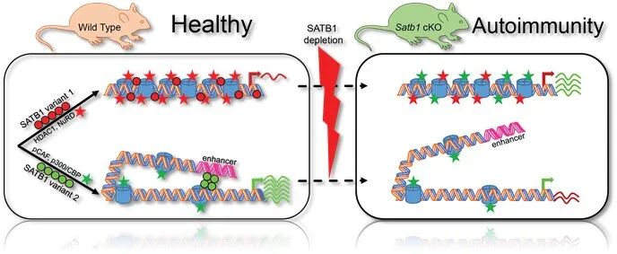 利用大量的基因组方法,参与的科学家能够证明SATB1蛋白本质上在T淋巴细胞的三维空间中创建基因网络,并且它们的表达被极其精确地调节。上述蛋白质的缺乏导致免疫特异性基因的表达失调,并因此导致广泛炎症和自身免疫的诱导。